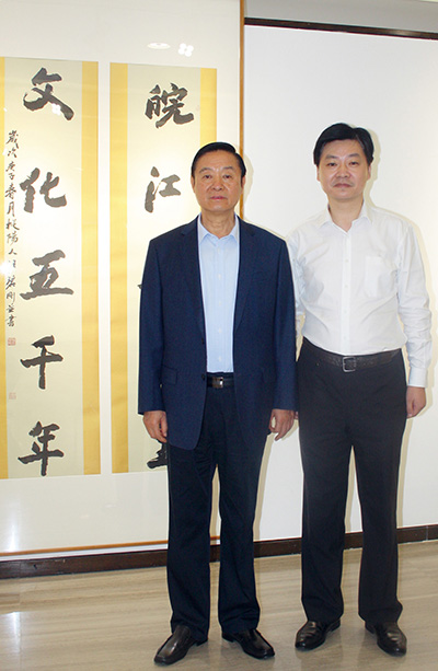 2020年9月24日,全国政协副主席刘奇葆(十八届中央政治局委员、中央书记处书记、中宣部部长)专程参观北京世纪名人国际书画院与安徽大学联合主办的“问学:汪碧刚书法展”,与作者汪碧刚教授热烈交流互动。